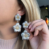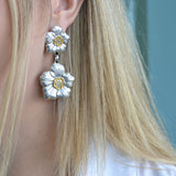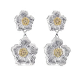 Buccellati - Blossoms Gardenia - Drop Earrings with Brown Diamonds, Sterling Silver with Gold Accents