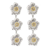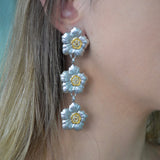 Buccellati - Blossoms Gardenia - Long Drop Earrings with Brown Diamonds, Sterling Silver with Gold Accents