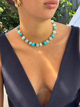 A & Furst - Bonbon - Necklace with Chalcedony, Turquoise and London Blue Topaz, 18k Yellow Gold