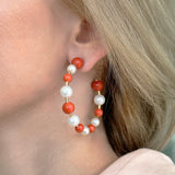 A & Furst - Joy - 48 mm Hoop Earrings with White Pearls and Natural Red Corals, 18k Yellow Gold