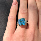 A & Furst - Party - One a Kind Cocktail Ring with Natural Blue Zircon and Diamonds, 18k Yellow Gold