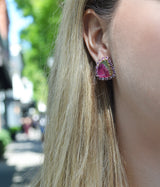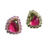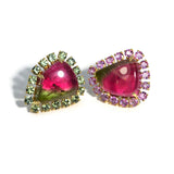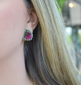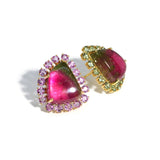 A & Furst - Sole - One of a Kind Button Earrings with Watermelon Tourmaline, Pink and Green Sapphires, 18k Yellow Gold