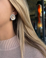 Buccellati - Blossoms Colour - Button Earrings, Sterling Silver with Pink Opal, Diamonds, and Gold Accents