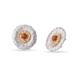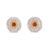 Buccellati - Blossoms Colour - Button Earrings, Sterling Silver with Red Jasper, Diamonds, and Gold Accents