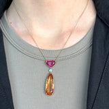 Eclat Jewels - One of a Kind Drop Necklace with Imperial Topaz, Spinel, and Diamond, 18k Rose Gold and Platinum