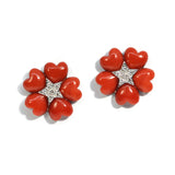 A & Furst - Fiori - Small Button Earrings with Natural Mediterranean Red Corals and Diamonds, 18k White Gold