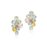 Goshwara - G-One - Beryl and Aquamarine 8-Stone Cluster Earrings with Diamonds, 18k Yellow Gold.
