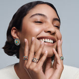 Buccellati - Blossoms Colour - Button Earrings, Sterling Silver with Light Blue Agate, Diamonds, and Gold Accents