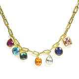 Lauren K - Bezel Set Necklace with Multicolor Gemstones, 18k Yellow Gold