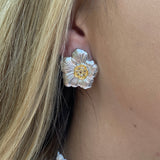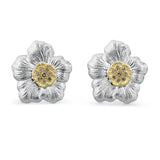 Buccellati - Blossoms Gardenia - Button Earrings with Brown Diamonds, Sterling Silver with Gold Accents