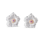 Buccellati - Blossoms Gardenia - Small Button Earrings, Pink Sapphires, Sterling Silver, Gold Accents