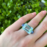 1 Emerald-cut Blue Topaz, 13x18 mm, total weight 17.12 carats.