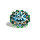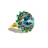 A & Furst - Sole - Cocktail Ring with Blue Topaz, London Blue Topaz and Emeralds, 18k Yellow Gold