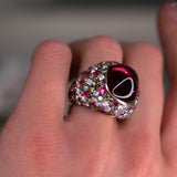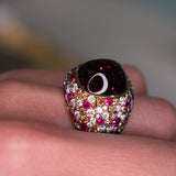 Eclat Jewels - One of a Kind Ring with Cabochon Pink Tourmaline, Diamonds and Pink Spinels, 18k Rose Gold
