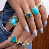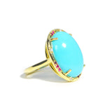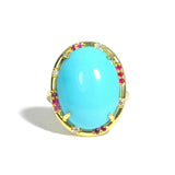 Lauren K - Cocktail Ring with Cabochon Sleeping Beauty Turquoise, Rubies, and Diamonds, 18k Yellow Gold
