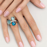Pomellato - Nudo Maxi - Stackable Ring with Blue Topaz and Diamonds, 18K White and Rose Gold