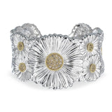 Buccellati - Blossoms Daisy - Cuff Bracelet with Brown Diamonds, Sterling Silver with Gold Accents