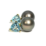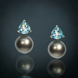 A & Furst - Bonbon - Drop Earrings with Blue Topaz and Black Tahitian Pearls, 18k Yellow Gold