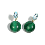 A & Furst - Bonbon - Drop Earrings with Blue Topaz, Malachite and Diamonds, 18k Yellow Gold
