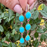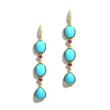 Lauren K - Drop Earrings with Sleeping Beauty Turquoise, Rubies, and Diamonds, 18k Yellow Gold