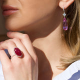 Eclat Jewels - One of a Kind Ring with Cabochon Ruby and Diamonds, Platinum