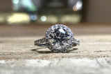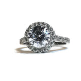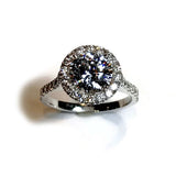 AF Jewelers Mounting Halo Ring for 1 Round Diamond approx 1.50 carat mm 7.20 with Diamonds, 18k White Gold