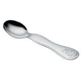 Add whimsy to any child’s place setting with a silver plated baby spoon featuring the Charlie Bear stuffed animal motif and ample rounded handle easily grabbed by miniature fingers. Makes an ideal baby shower or christening gift. Destined to become a family heirloom. Can be engraved.