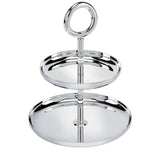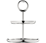 The silver-plated Vertigo 2-tier dessert stand adds modern and playful elegance to your table or dessert buffet. Perfect for serving cupcakes, breakfast pastries, mini desserts or small sandwiches at tea time. Vertigo’s bold motif — a subtly asymmetrical, thick ring often placed playfully askew — can be found on every piece in the collection designed by Andrée Putman.