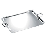 An extra-large silver-plated rectangular tray features two side handles.