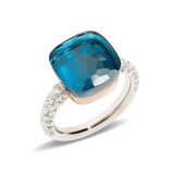 Pomellato - Nudo Maxi - Stackable Ring with London Blue Topaz and Diamonds, 18k White and Rose Gold