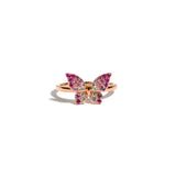 AFJ Diamond Collection - Butterfly Ring with Diamonds and Pink Sapphires, Rose Gold