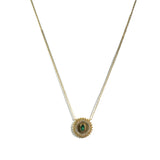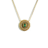 AFJ Diamond Collection - Round Pendant Necklace with Diamonds and Emerald, Yellow Gold