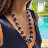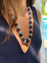 Eclat Jewels - One of a Kind Necklace with Amethyst, Turquoise and Diamonds, 18k Yellow Gold
